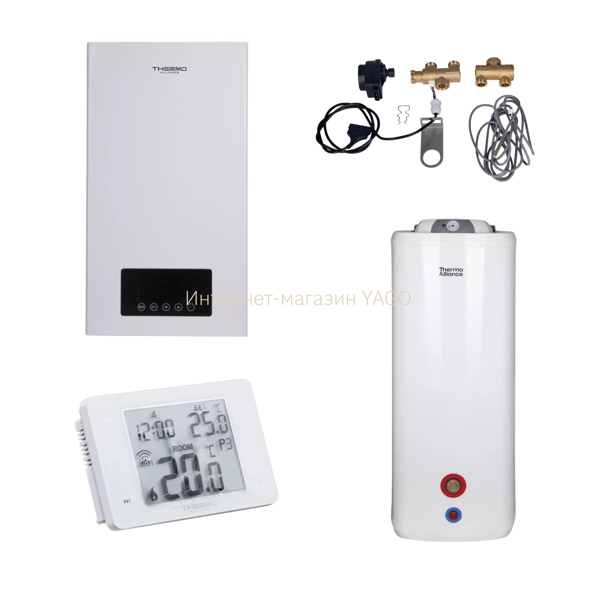 - Доставка Комплексне рішення Thermo Alliance для котельні: електричний котел 12 кВт + комплект підключення бойлера + комбінований підлоговий водонагрівач 120 л у Одеса