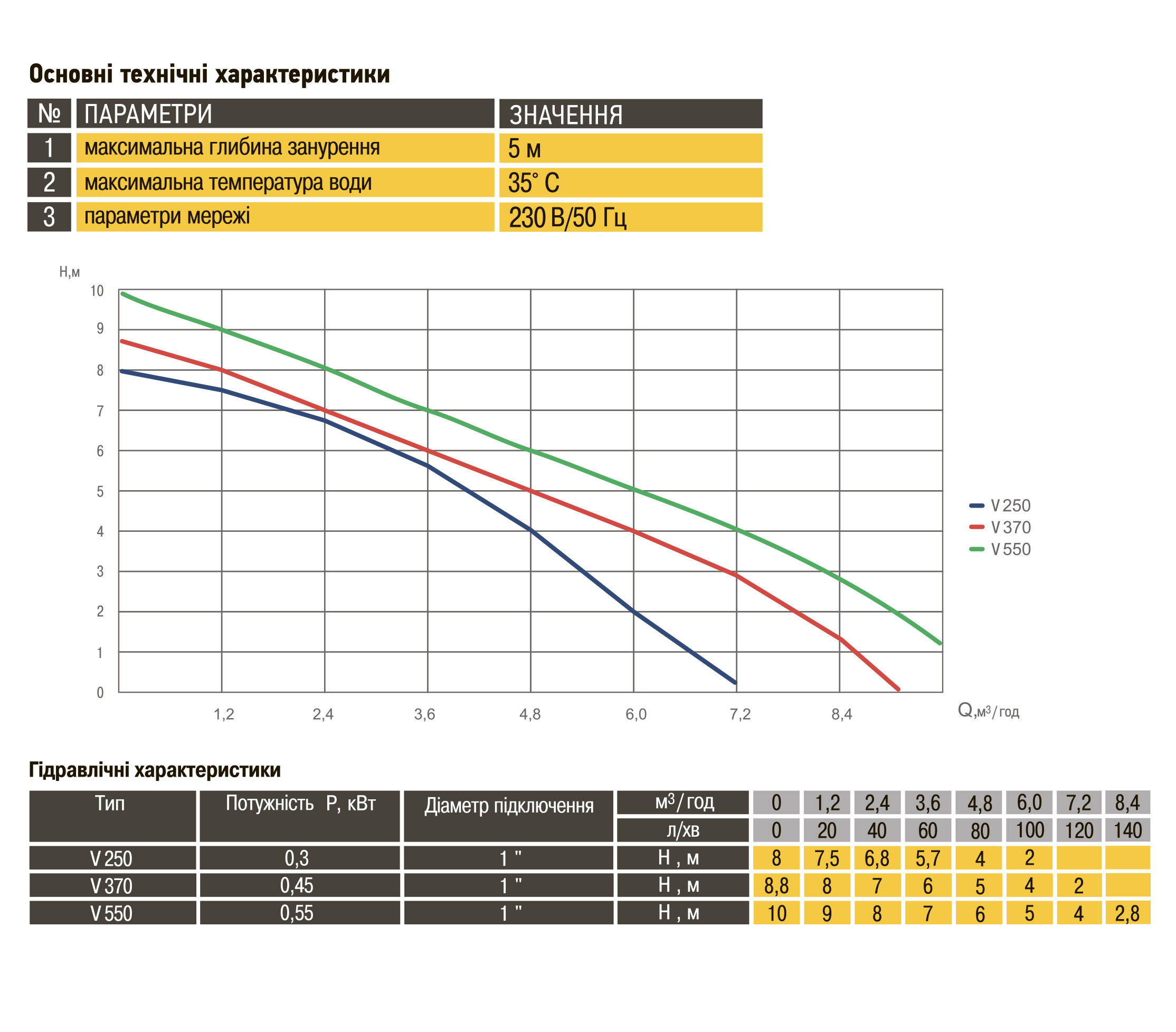 • максимальний напір - 8,8 м;