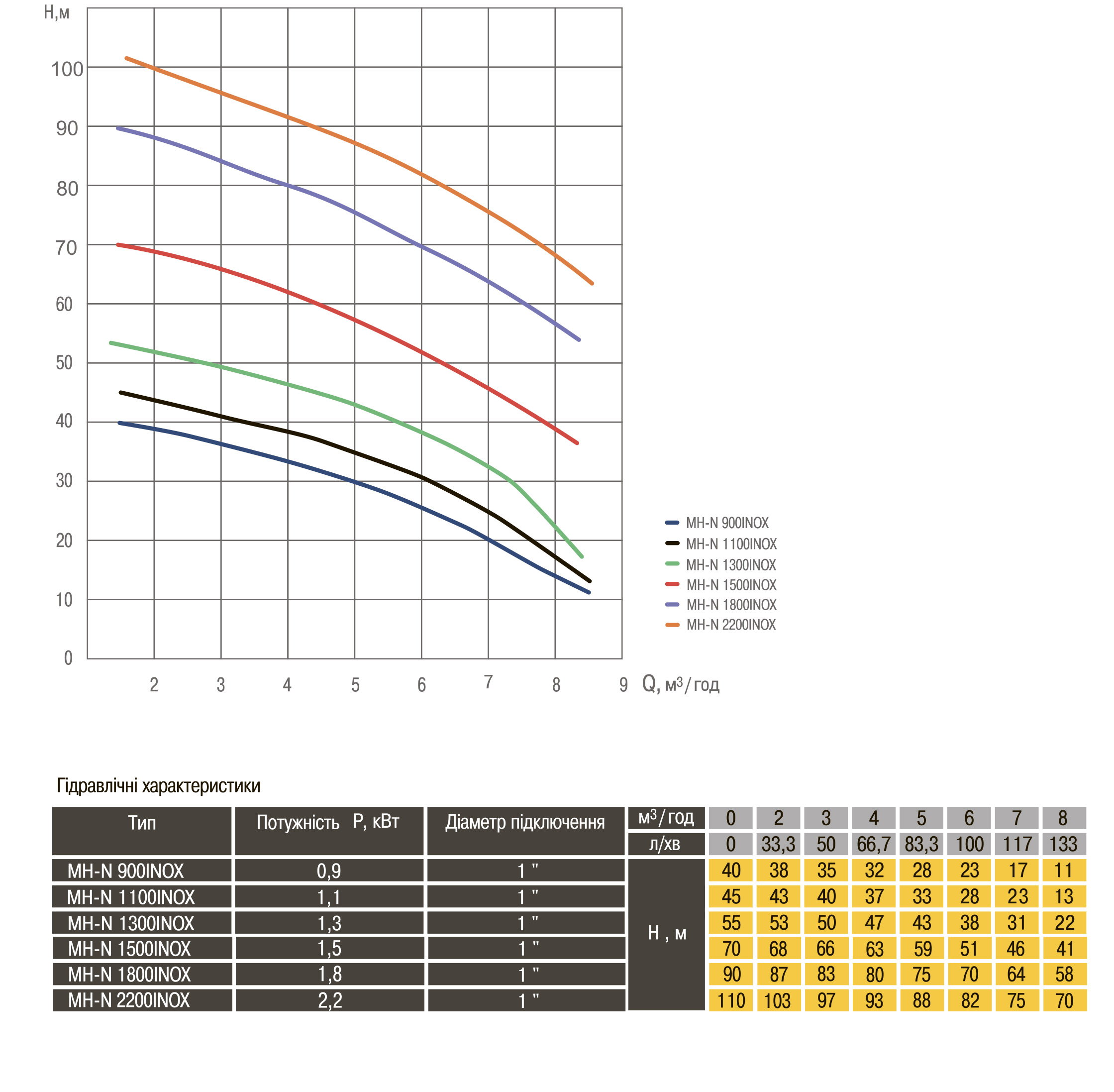 Висота підйому води даної моделі до 7 метрів. Кількість робочих коліс MH-N 1800INOX - 8.