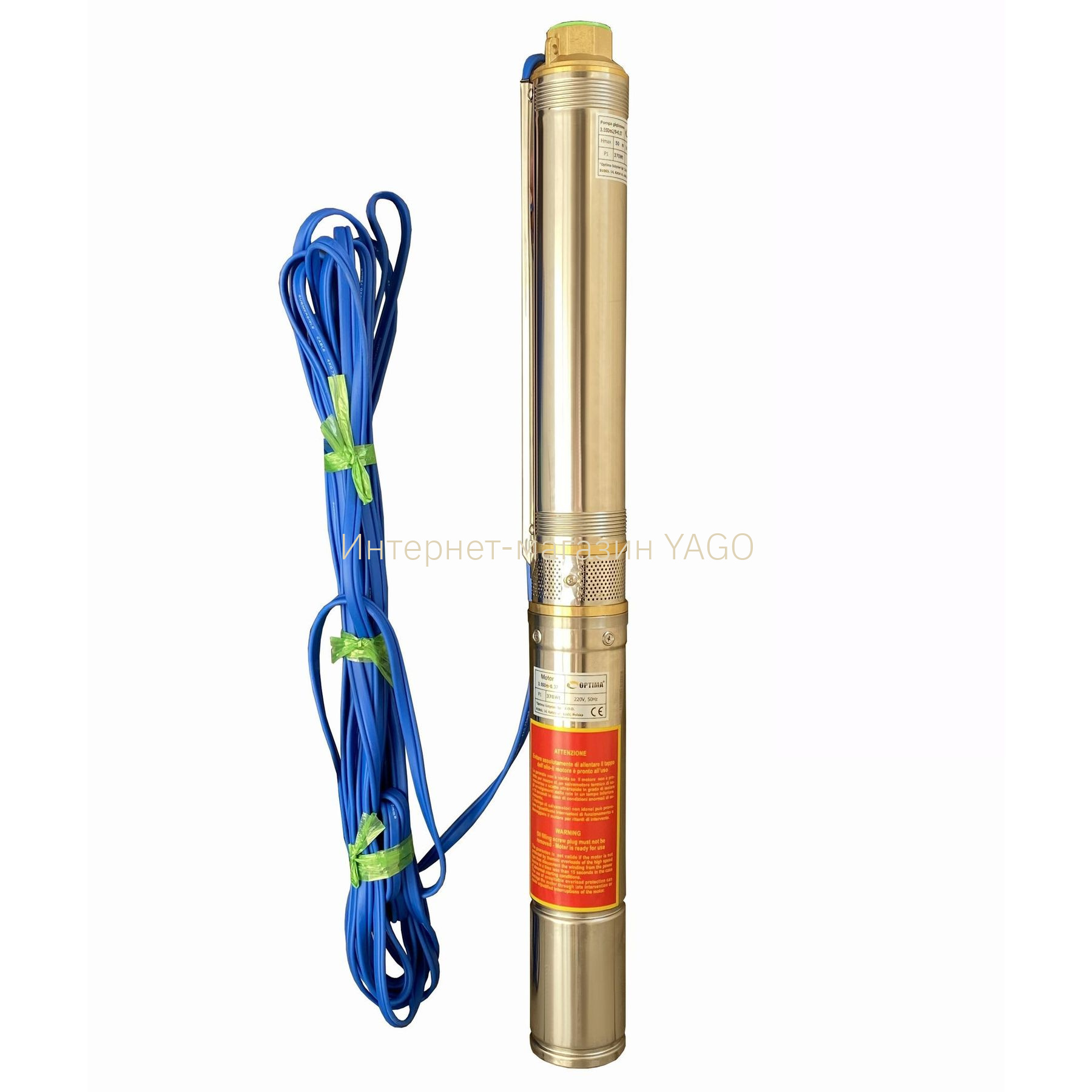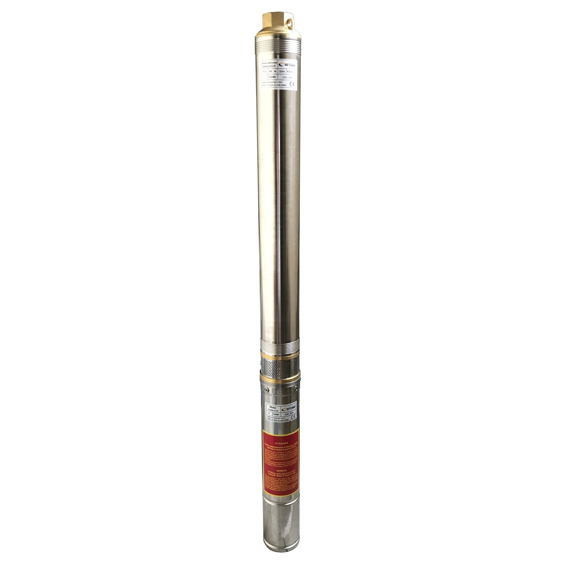 OPTIMA 3.5SDm2 / 9 0,37 кВт 50м оснащений асинхронним однофазними двигуном з коротко замкнутим ротором і «плаваючим» робочим колесом, для реалізації підвищеної стійкості до піску. Насос комплектується вбудованим в пульт теплової захистом, а також конденсаторним блоком. Двигун заповнений спеціальним мінеральним маслом для ефективного охолодження (тепловіддачі в навколишнє середовище), а також для змащення й охолодження підшипників і механічного ущільнення.