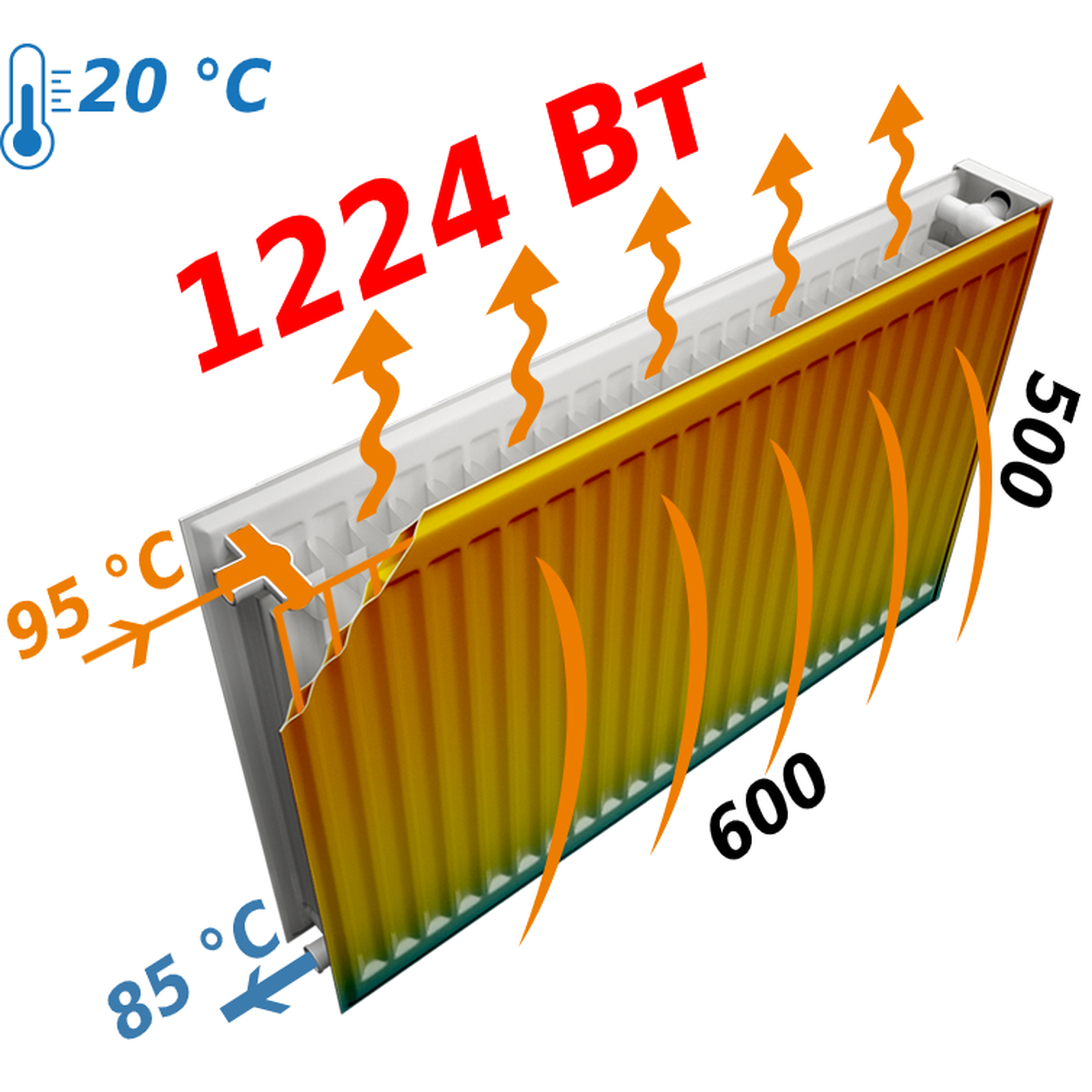 • Теплова потужність ∆t=70°C, Вт: 1224
