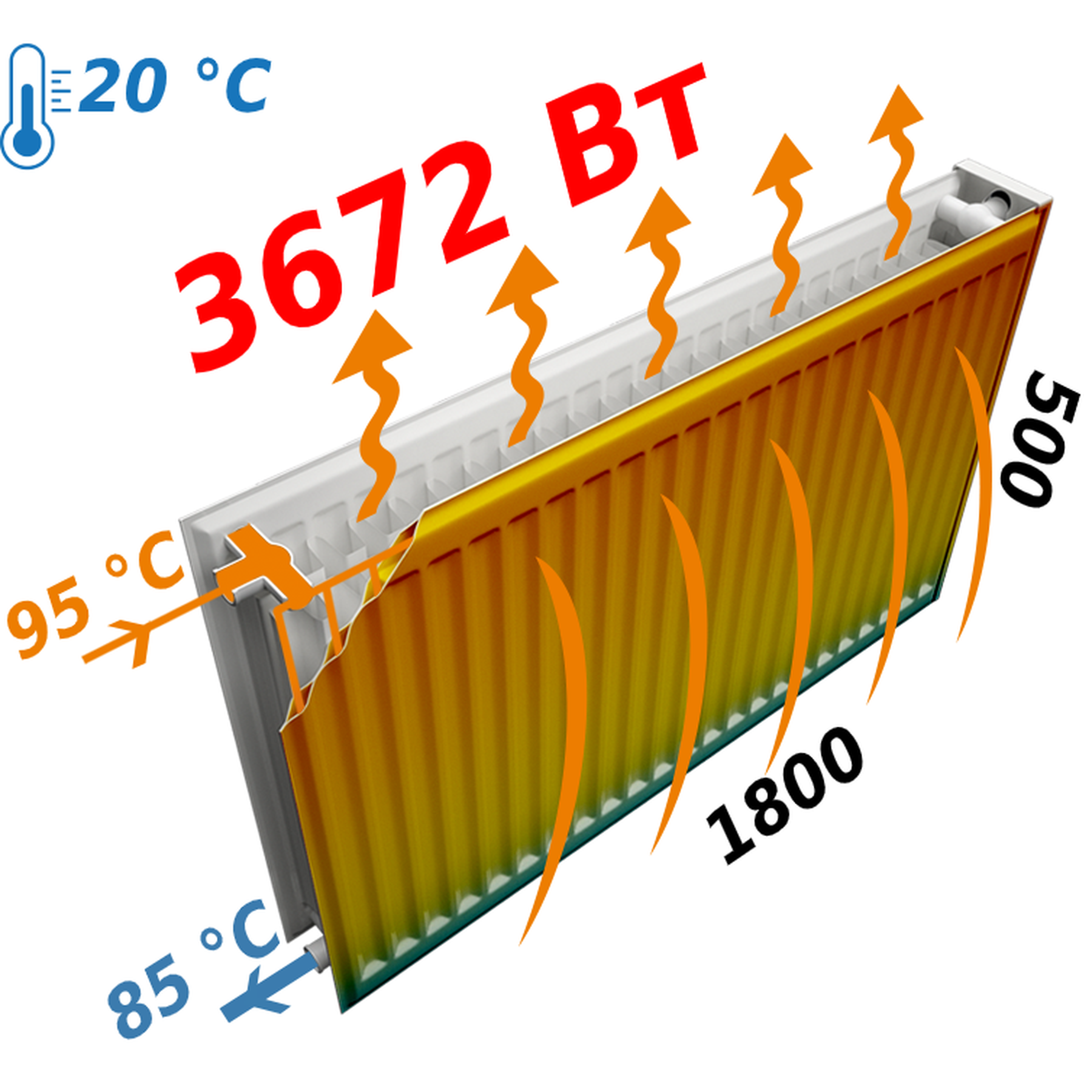 • Теплова потужність ∆t=70°C, Вт: 3672