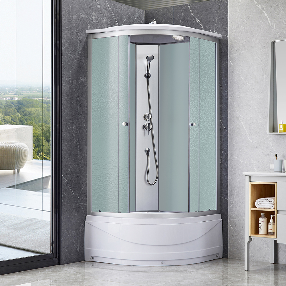 Скло; скло – задні стінки; алюміній – профіль; ABS пластик – ручки; акрил – піддон |