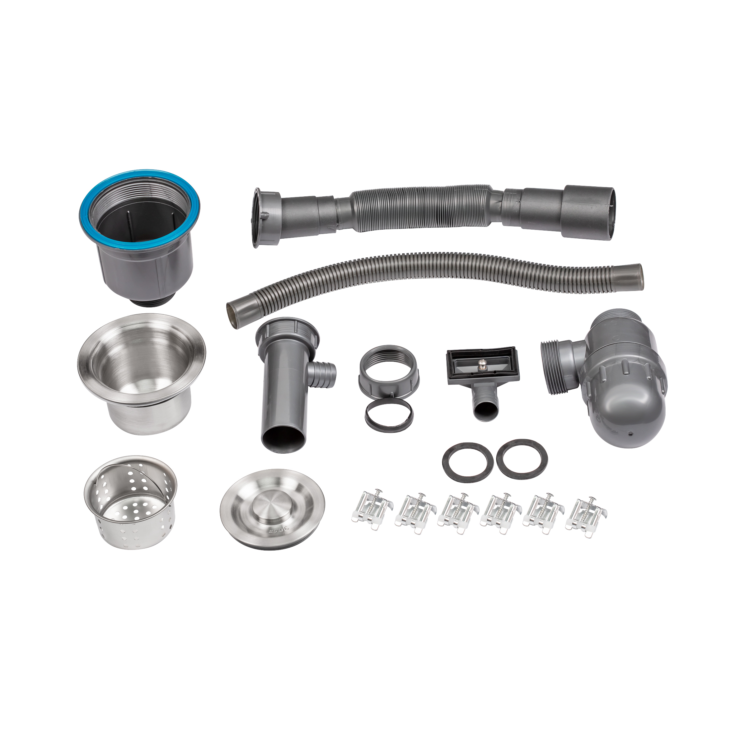 Мийка, сифон, слив/перелив, кошиковий вентиль, дозатор, кріплення. |