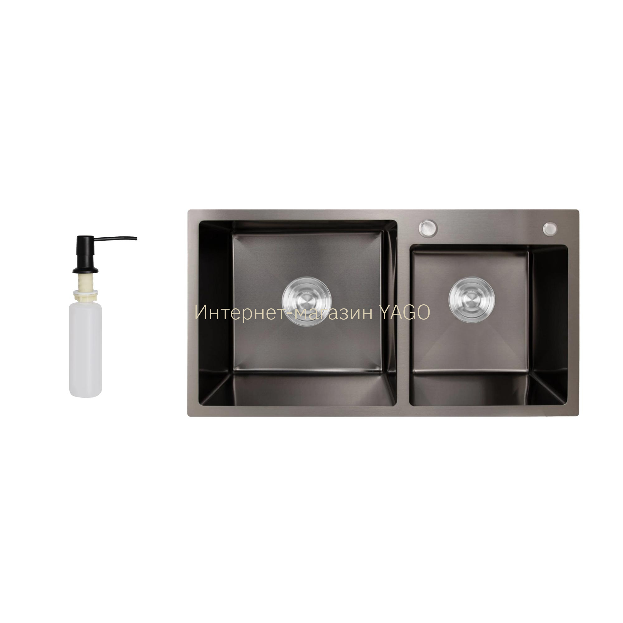 - Доставка Мийка для кухні з двома чашами інтегрована Lidz Handmade H7843 (LDH7843BPVD45586) Brushed Black PVD 3,0/1,0 мм у Херсон
