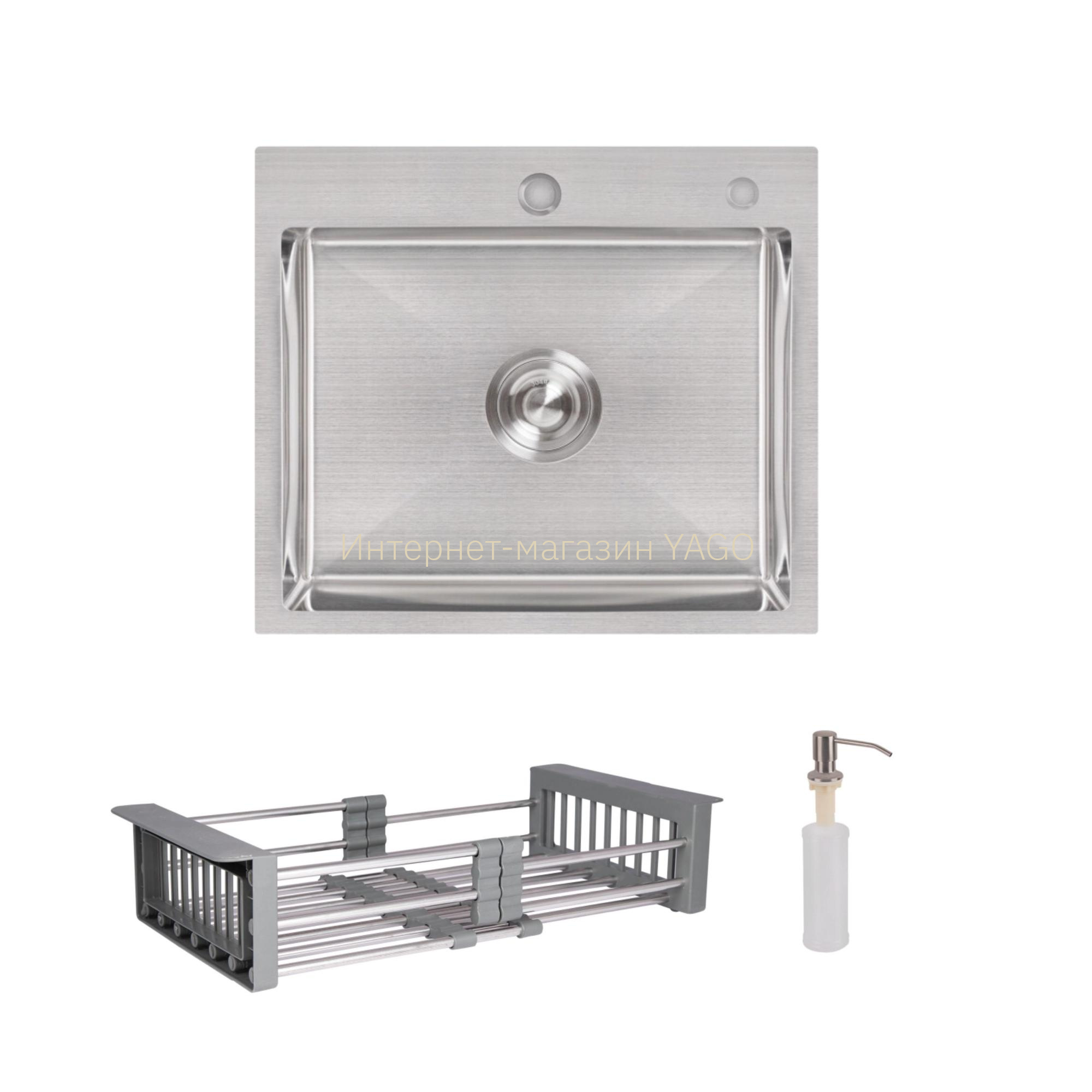 Нержавіюча сталь - мийка; латунь / пластик - дозатор; нержавіюча сталь / пластик - кошик |