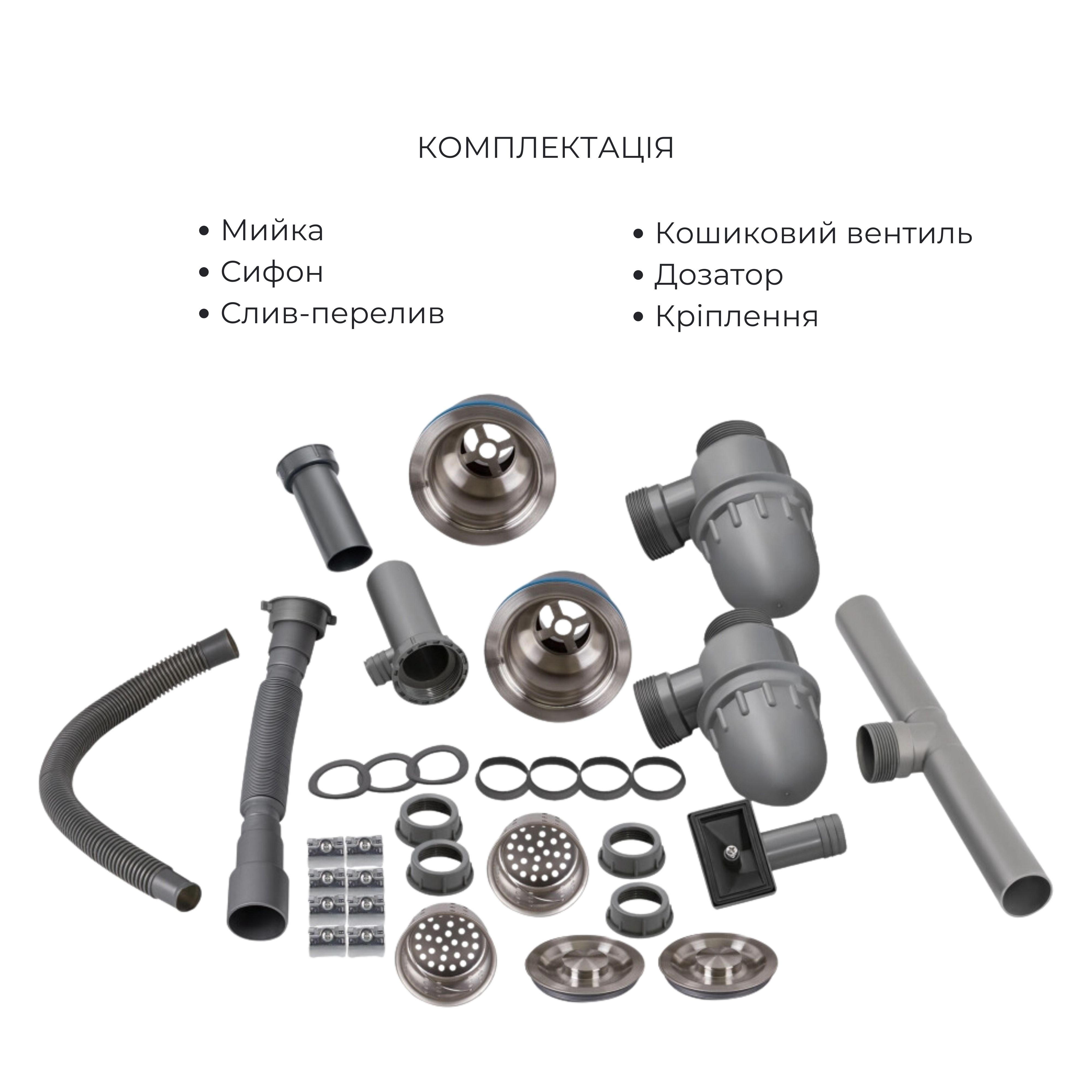 - Доставка Комплект Lidz Handmade H7843 Мийка для кухні з двома чашами інтегрована Brushed у комплекті з дозатором + Lidz K01G Корзина для кухонної мийки у Чернігів