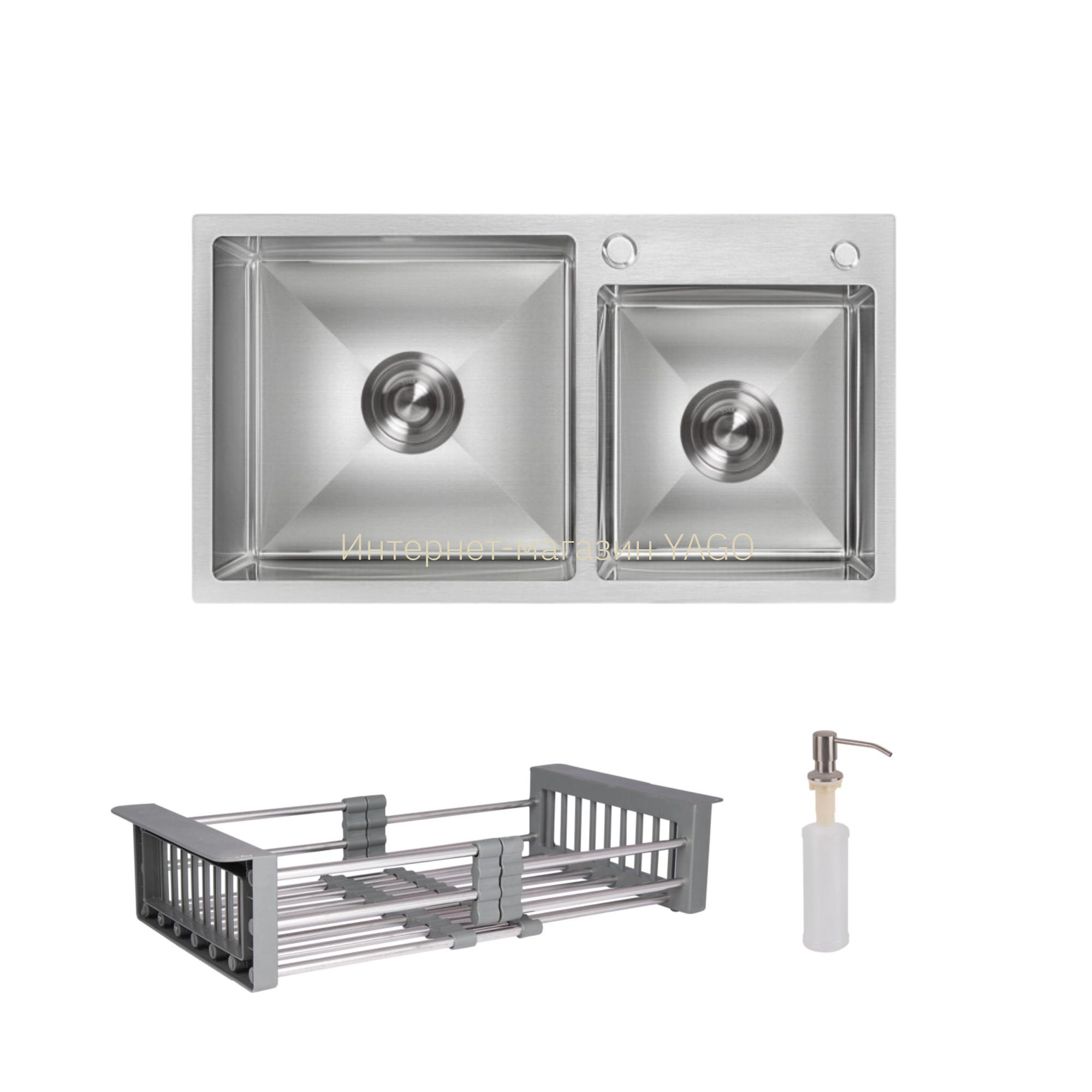 - Доставка Комплект Lidz Handmade H7843 Мийка для кухні з двома чашами інтегрована Brushed у комплекті з дозатором + Lidz K01G Корзина для кухонної мийки у Львів