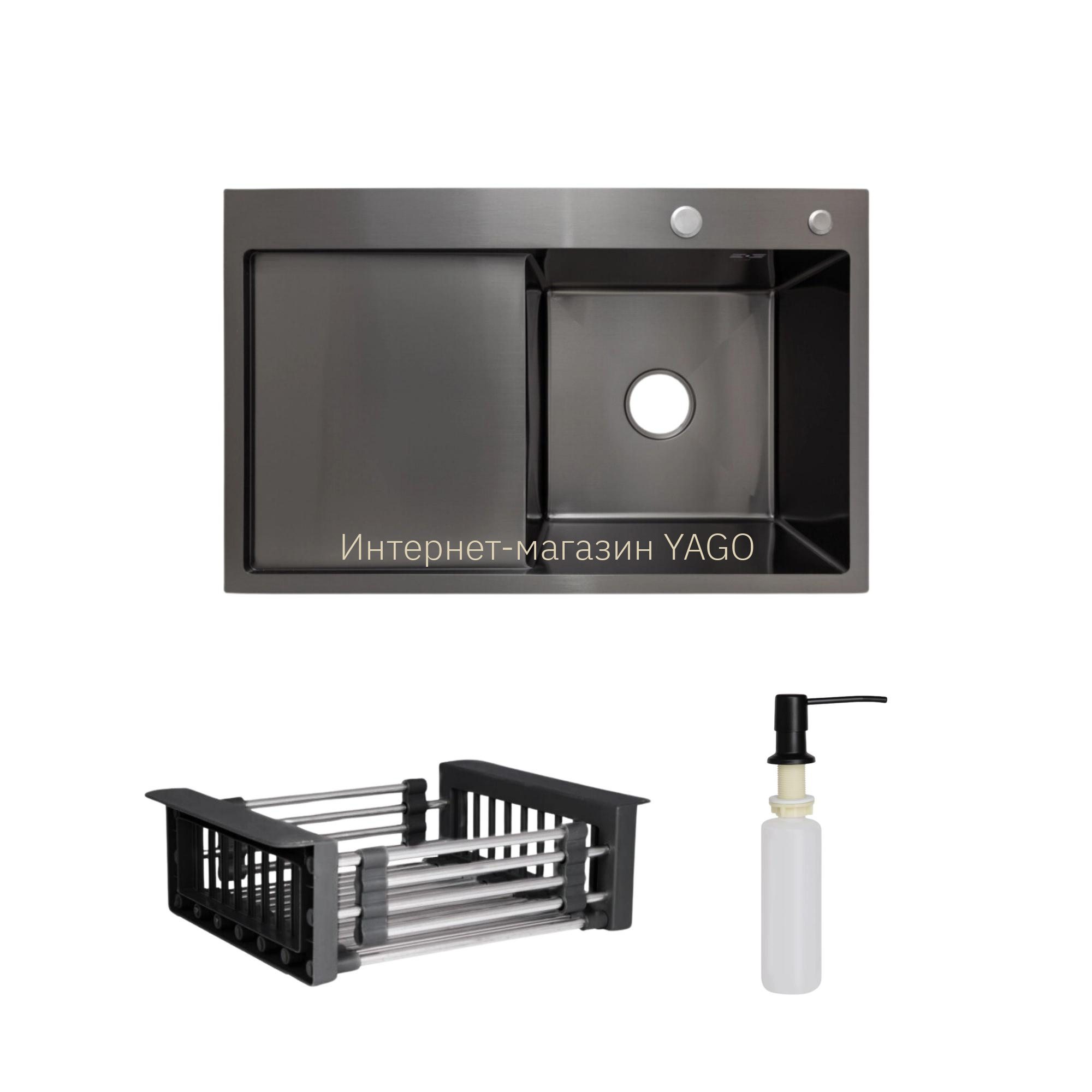 - Доставка Комплект Lidz Handmade H7849BL Мийка для кухні інтегрована крило зліва BlackPVD у комплекті з дозатором + Lidz K01B Корзина для кухонної мийки у Київ