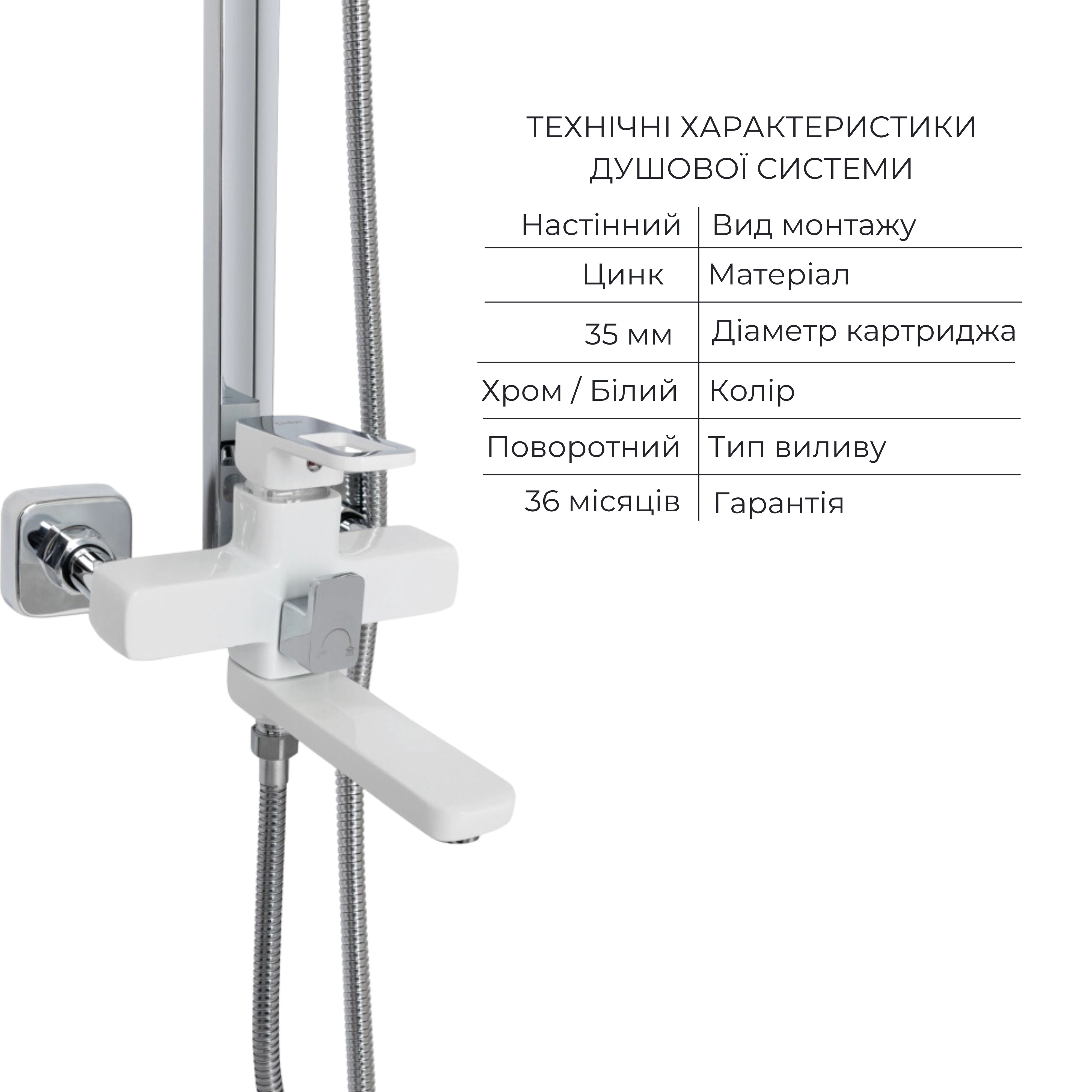 Змішувач (LDWAW001WHI45397), душ. система (LDWAW1030WHI45401) |