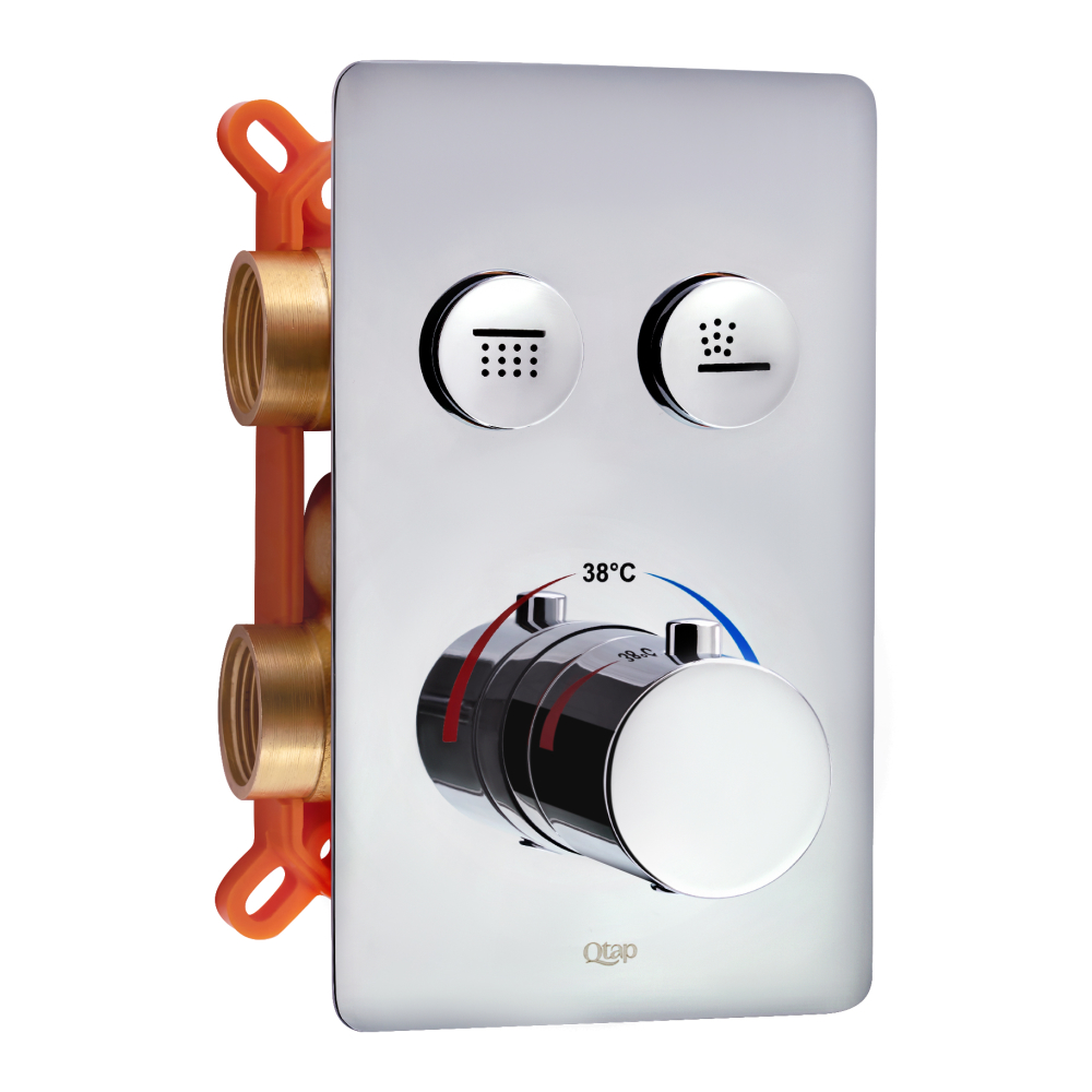 🚚 Доставка Змішувач для душу Qtap Votice термостатичний прихованого монтажу на два споживача QTVOT6442T105NKC Chrome по Україні