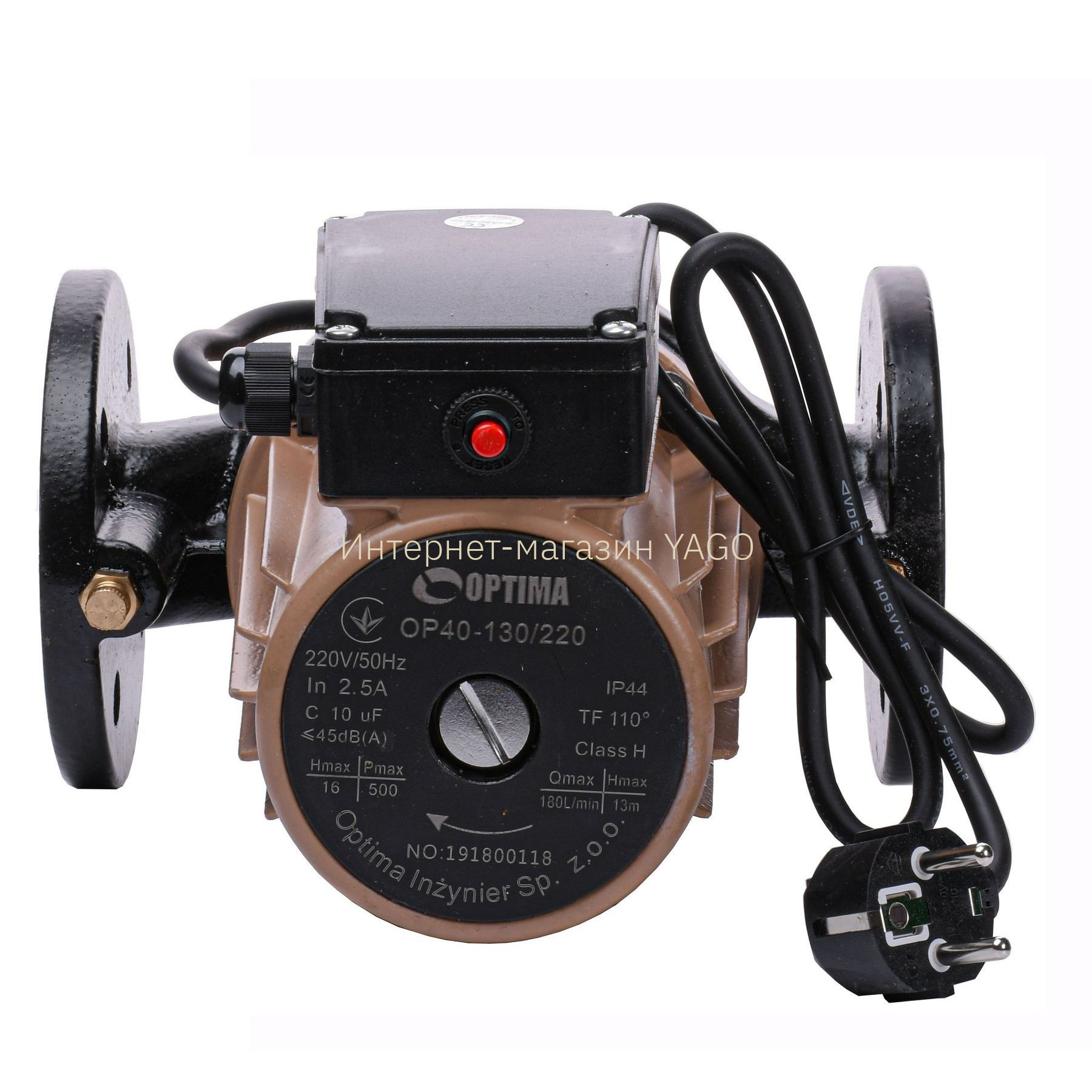 Насос циркуляційний фланцевий Optima OP40-130 220мм + кабель з вилкою |