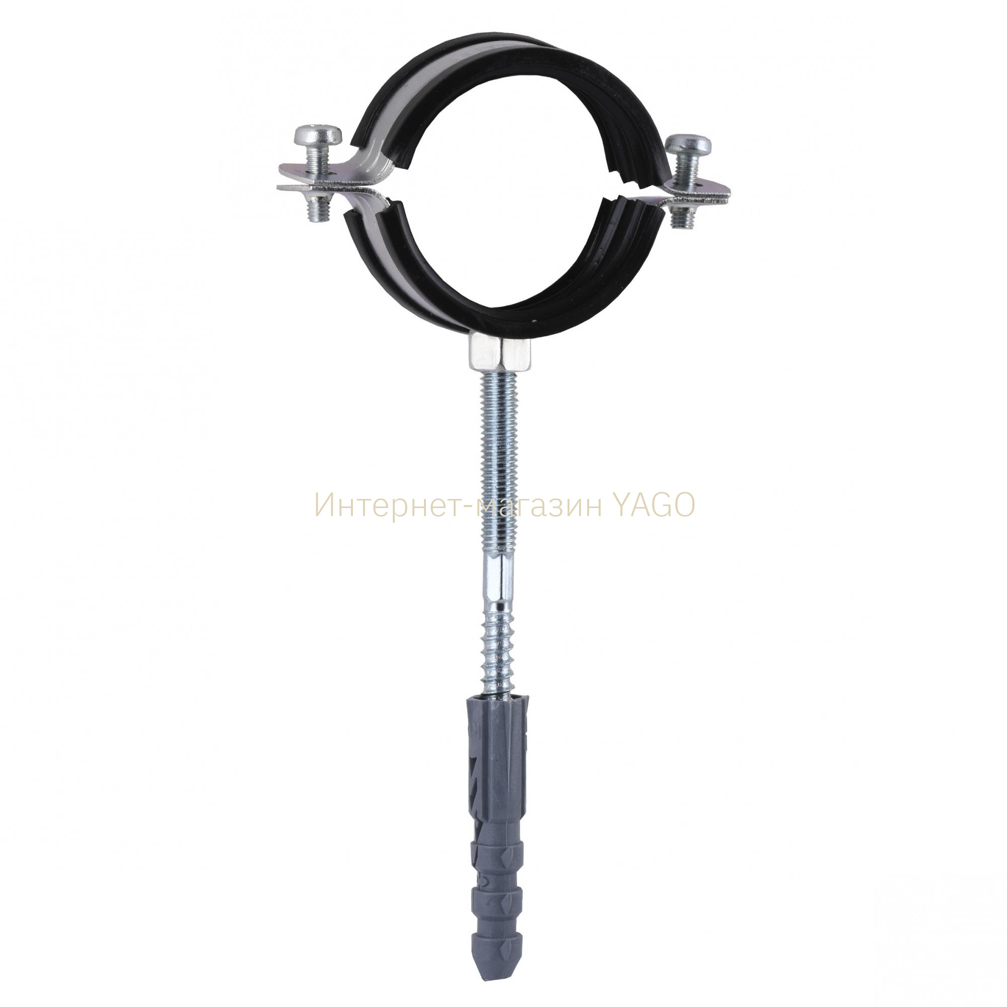 Призначений для монтажа любих труб із пластика та металу, труб для водопроводу та опалення з круглим перетином, а також канализації, вентиляції и кондиціонування. Гумова прокладка знижує вібрацію, що передається від труби на систему кріплення.